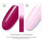 Go for a pink-purple hie Temperature Changing gel and once your nails get cold will be transformed into a completely different shade of gel polish, revealing a white shade.?With a full cover texture is perfect for party!